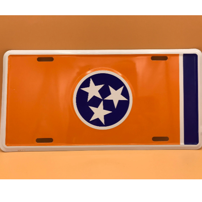 Tennessee's state flag in license plate form so you can 'fly' it everywhere you go. This version is orange instead of the traditional red in honor of the University of Tennessee. GO VOLS!!!